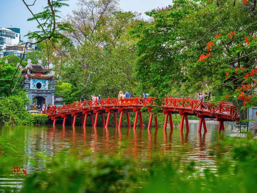 Pour démarrer cette journée, visite du temple Ngoc Son, situé sur le lac Hoan Kiem (ou lac de l’Épée) que l’on rejoint par un charmant pont de bois.